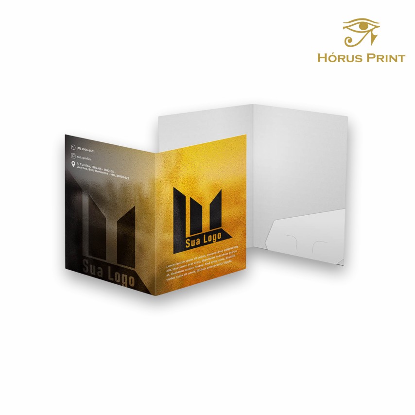 Pasta com Bolsa Colada do Hórus Print é a solução ideal para quem busca unir organização, praticidade e apresentação profissional. Produzida em papel resistente e com acabamento em verniz total brilho, oferece durabilidade e um toque sofisticado para materiais corporativos, acadêmicos ou promocionais.